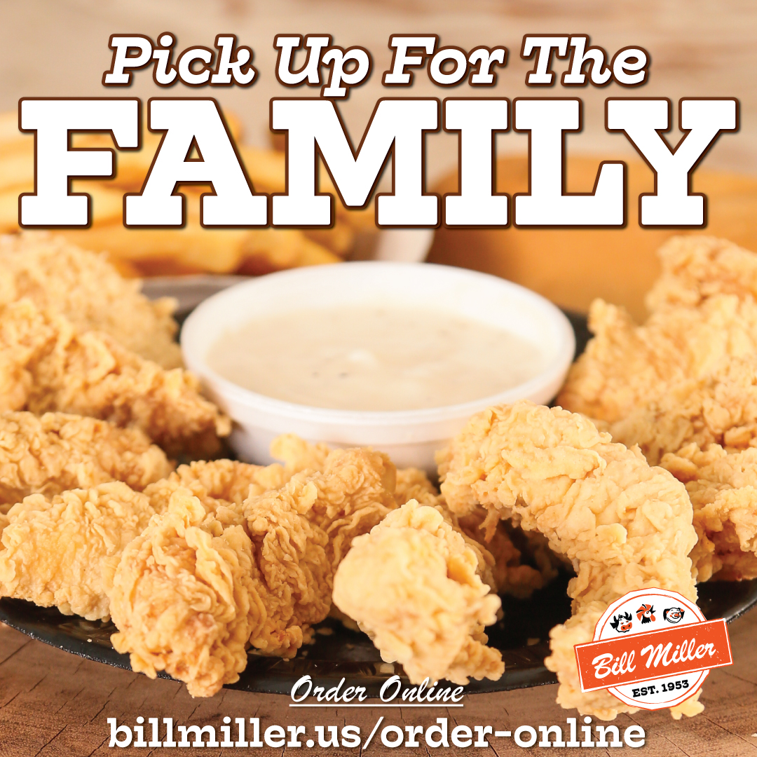 Ad Bill Millers BBQ menu with prices and locations. All white chicken meat option available for an extra charge. Click here to find a dine-in location near you.